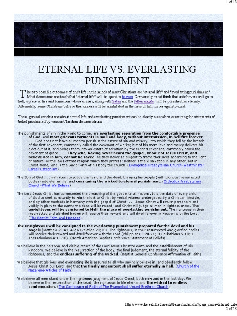 Eternal Life vs. Everlasting Punishment Hell Eternal Life