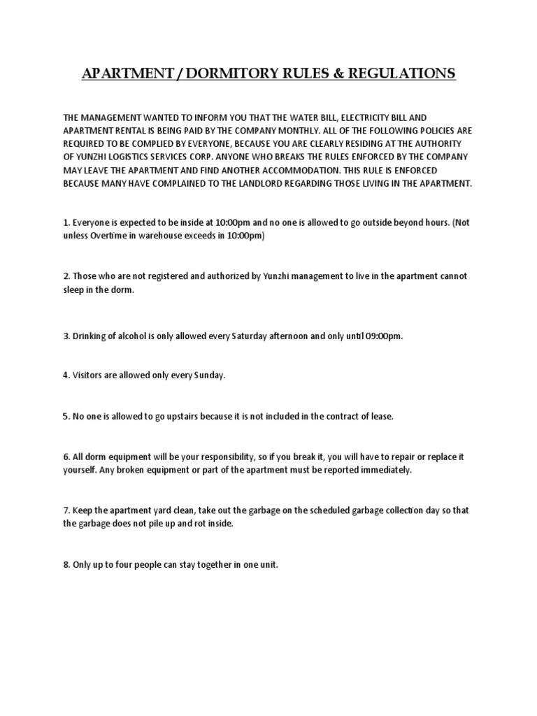 Dorm Rules English Version PDF