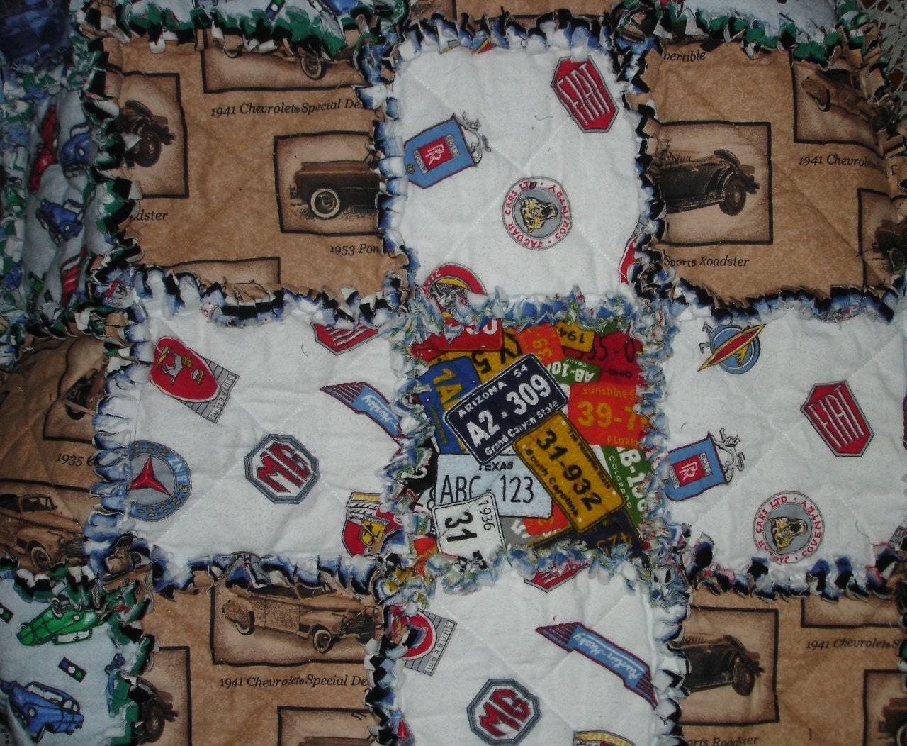 vintage car cotton flannel rag quilt blanket Ford Chevy Fiat