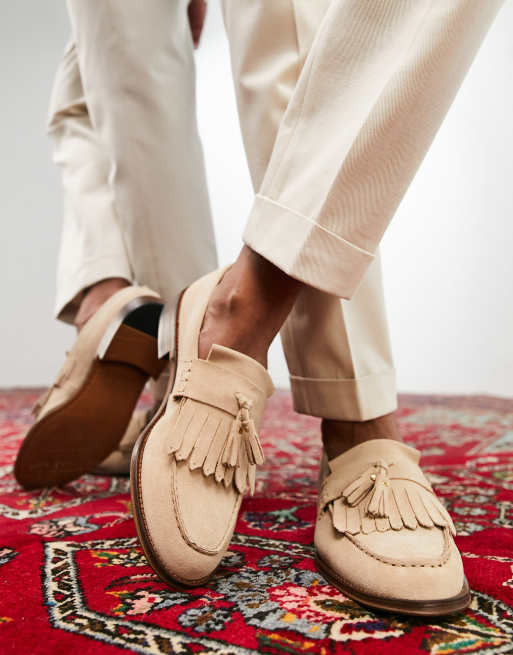 Noak made in Portugal loafers with fringe detail in stone suede ASOS