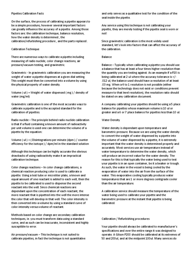 Pipettes Calibration Facts Calibration
