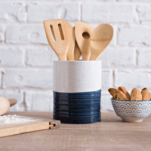 Navy Speckled Ceramic Utensil Holder Kirklands Home Utensil Holder Kirklands It will help keep your farmhouse kitchen counter organized. this large gray utensil holder is the perfect size for holding all of your favorite tools! hey guys, i’m back with more great farmhouse kitchen finds from kirklands, this time it’s 15 different items under $15! nwot, kirkland's chef utensil holder barrel, with 11 wooden utensils, 10h x. Utensil Holder Kirklands.