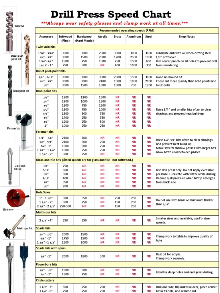 Drill Press Speed Chart Drilling Crafts