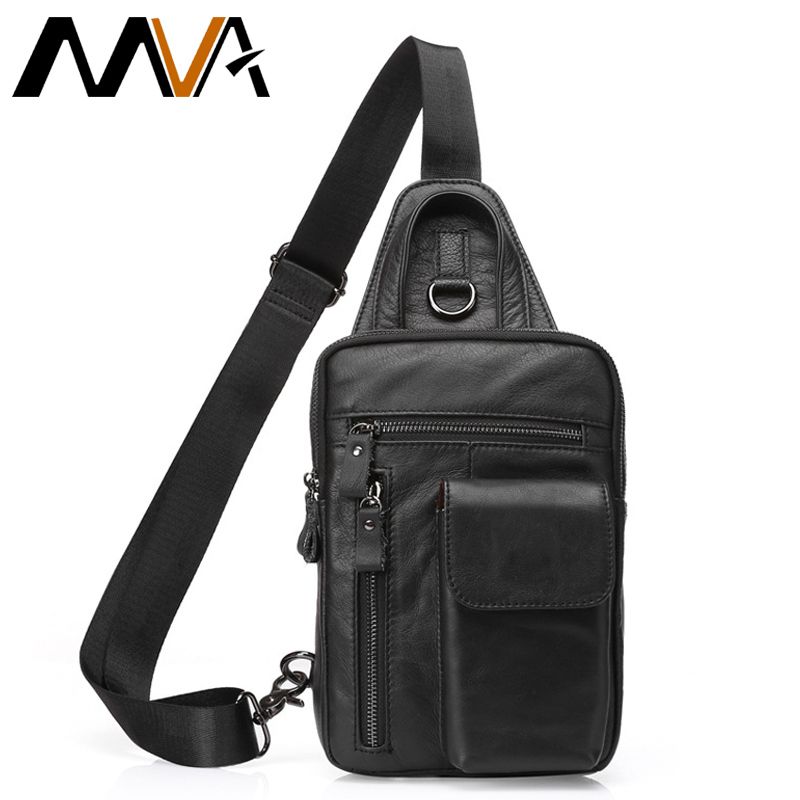 MVA Men Shoulder Bag Small Cell Phone Flap Genuine Leather Bag Strap