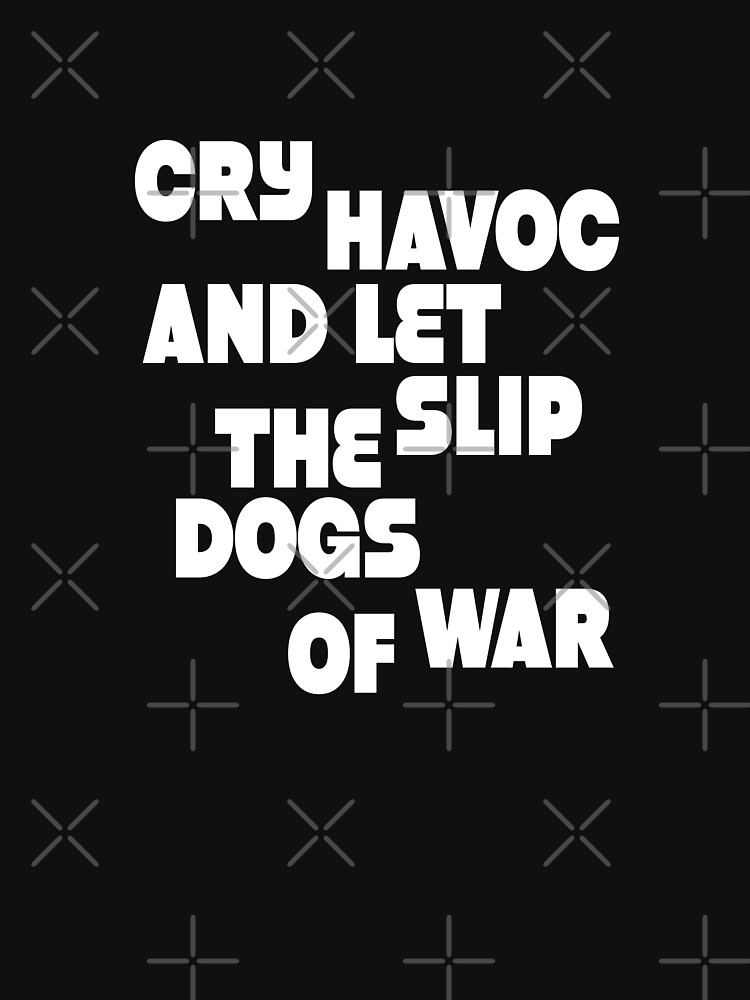 "Cry havoc and let slip the dogs of war (w)" Tshirt by Sinmara12 What Does This Mean Cry Havoc And Let Slip The Dogs Of War It was customary for soldiers to remain in their disciplined state throughout a. But, “dogs” is used as a metaphor for the broader chaos and death that antony is going to encourage. Crying havoc was the act of shouting an instruction by a military commander. The line originated in shakespeare’s julius caesar: The ‘cry havoc, and let slip the dogs. What Does This Mean Cry Havoc And Let Slip The Dogs Of War.