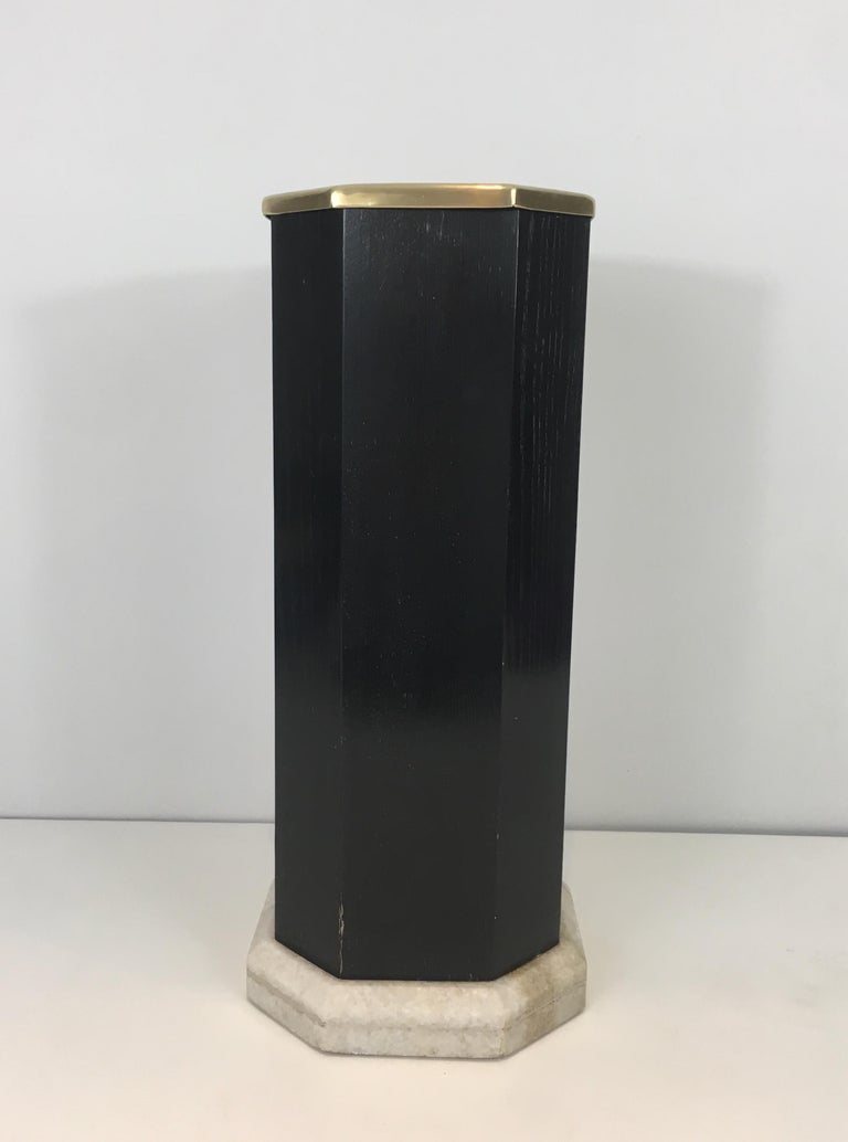 Rare Ebonized Wood, Brass and White Marble Umbrella Stand, French
