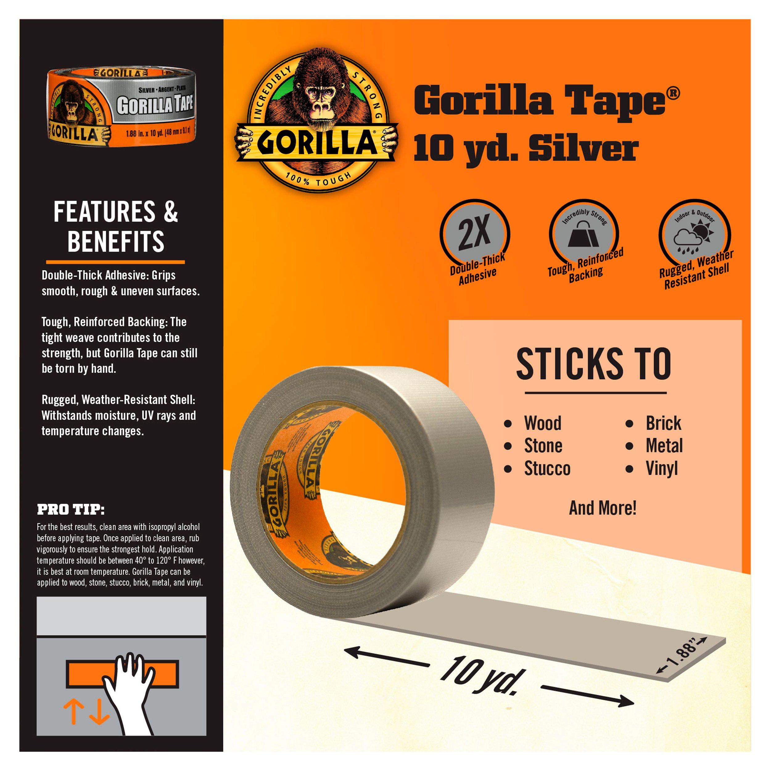 Gorilla 10yd. Silver Gorilla Tape Floor and Decor Can I Use Gorilla Tape On Walls I have gorilla tape, small pieces on a wall to have a wire stay in place, now that i need to take the wire off, so did the paint. It’s ideal for uses such as taping exposed wires, patching punctures and cracks, affixing objects to carpet and furniture, securing items to walls and. In this case, you generally have two. Can I Use Gorilla Tape On Walls.