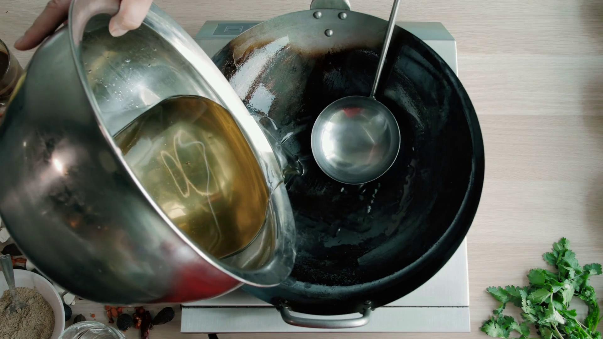 Chef Is Pouring Cooking Oil In Wok An Commercial Kitchen Stock Video Cooking Oil For Wok For wok cooking, use oils with a high smoke point and low polyunsaturated fat content. From stir fry to cooking a variety of recipes, a wok can be a versatile cooking tool. Types of oil to use in wok cooking. The best oils to use in wok cooking are: I recommend starting with an. Be very careful when you heat. Cooking Oil For Wok.