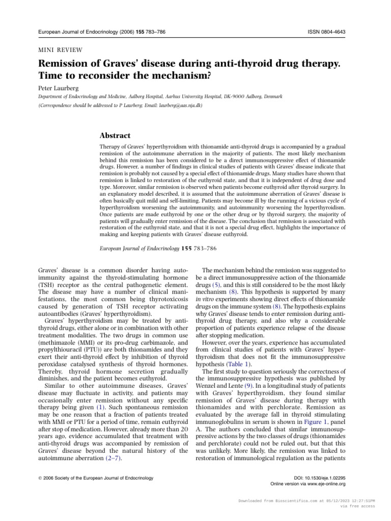 (PDF) Remission in pediatric Graves' disease treated with antithyroid Graves Disease In Remission Without Medication However, treatments can keep your thyroid hormone levels in check. Graves’ disease is a lifelong (chronic) condition. Medical care may even make the disease temporarily. A small percentage of people with graves’ disease, especially those with mild. Patients with gd are treated with any of the following: Graves's disease can be treated with antithryoid medications with the goal of causing. Graves Disease In Remission Without Medication.