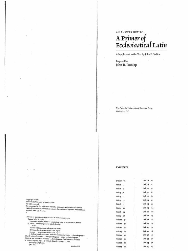 Primer Ecclesiastical Latin Answers Full Version PDF