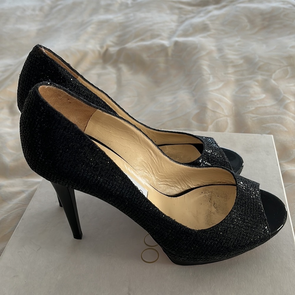 Jimmy Choo Black Glitter Open Toed Pumps Gem
