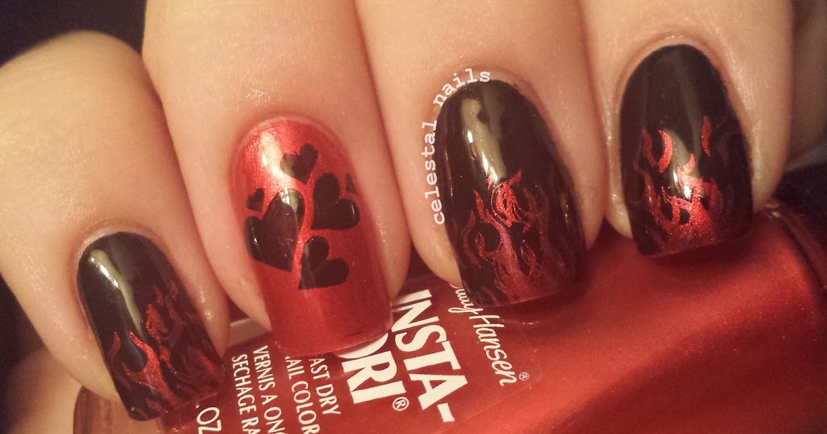 Hearts and Flames Nail Art Celestal Nails