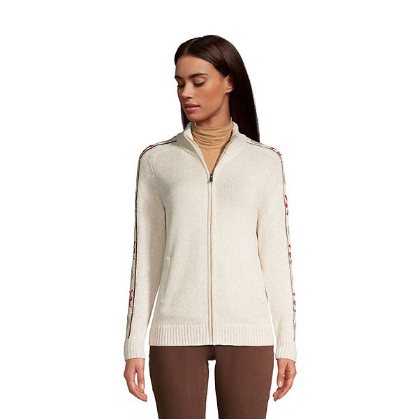 Women's Lands' End Drifter Fairisle Trim ZipFront Cardigan Sweater