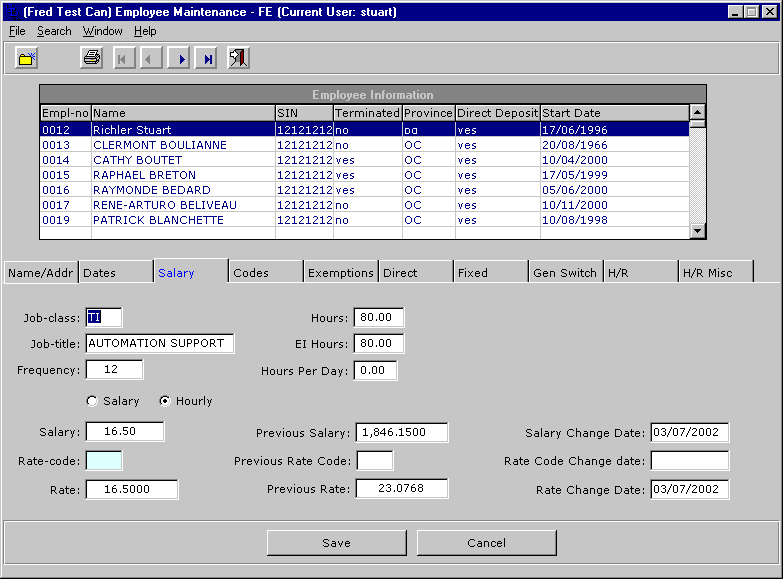 Employee Maintenance Salary Information