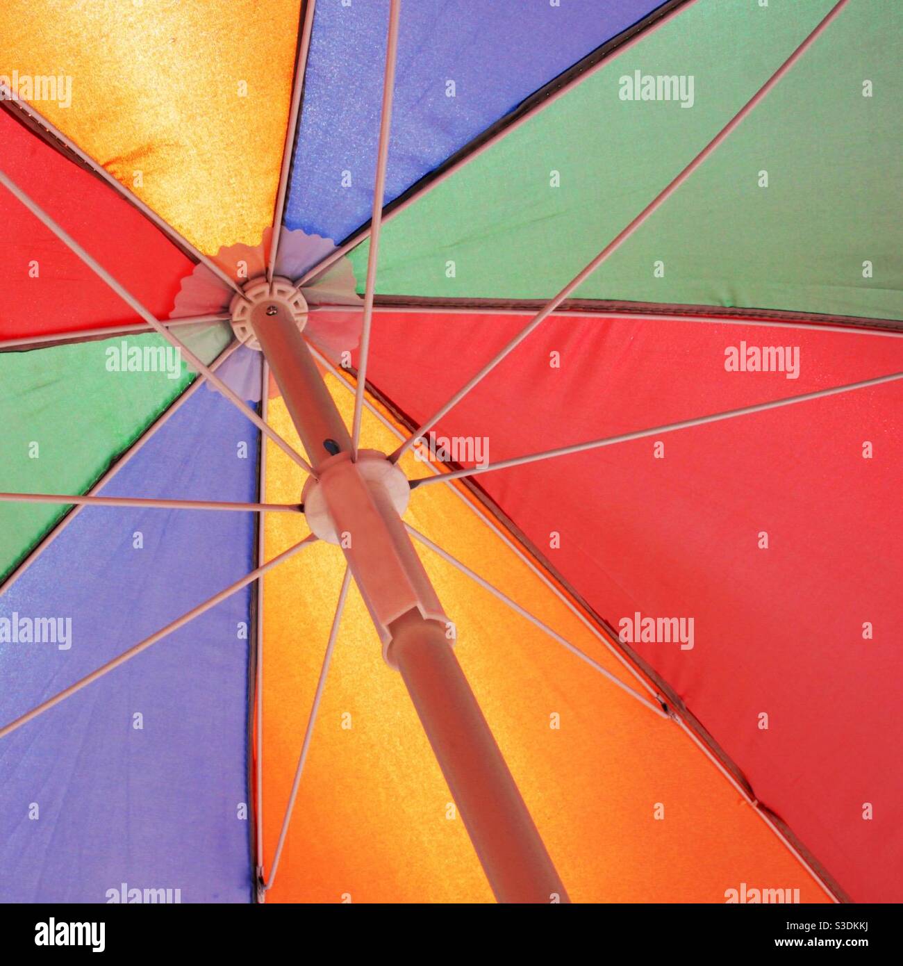 A beach umbrella seen from below Stock Photo Alamy