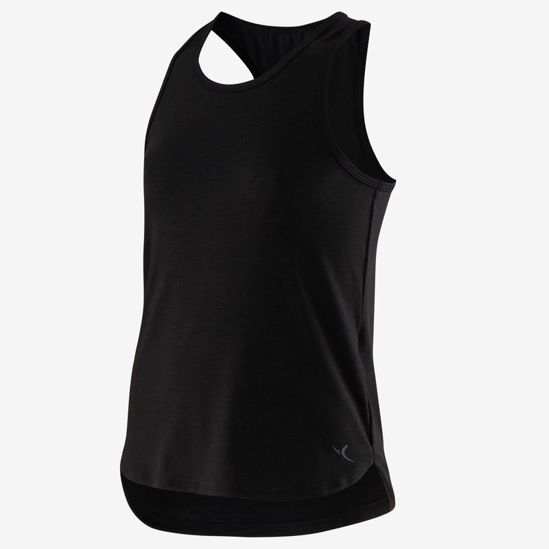 Girls' Breathable Gym Tank Top 500 Plain Black Decathlon