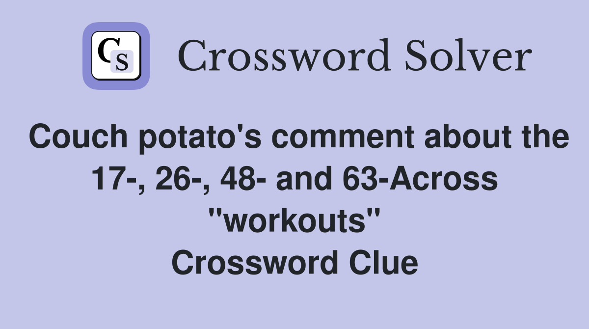 Couch potato's comment about the 17, 26, 48 and 63Across "workouts