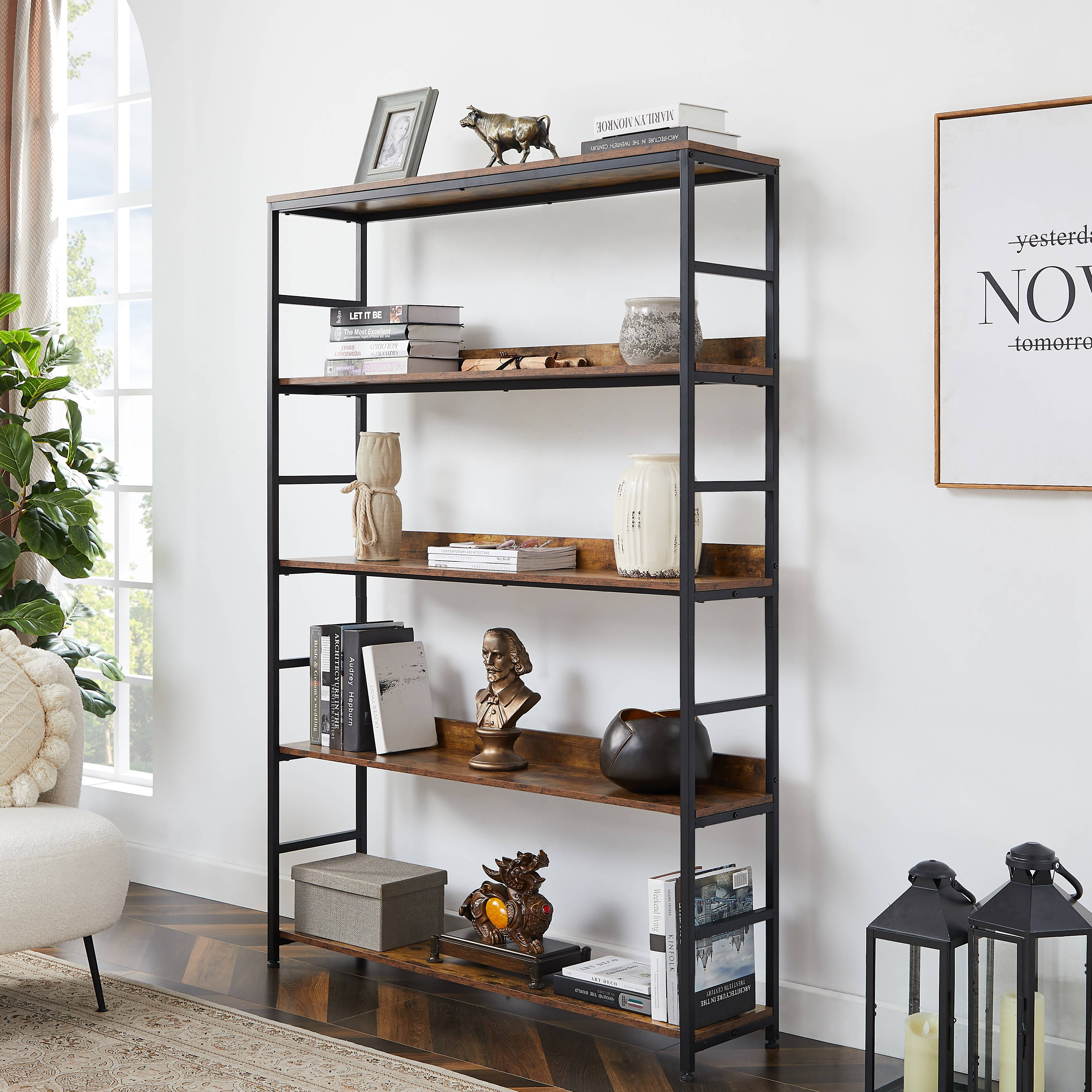 BTMWAY 5 Tier Bookshelf, Industrial Rustic Metal Bookshelf, Modern