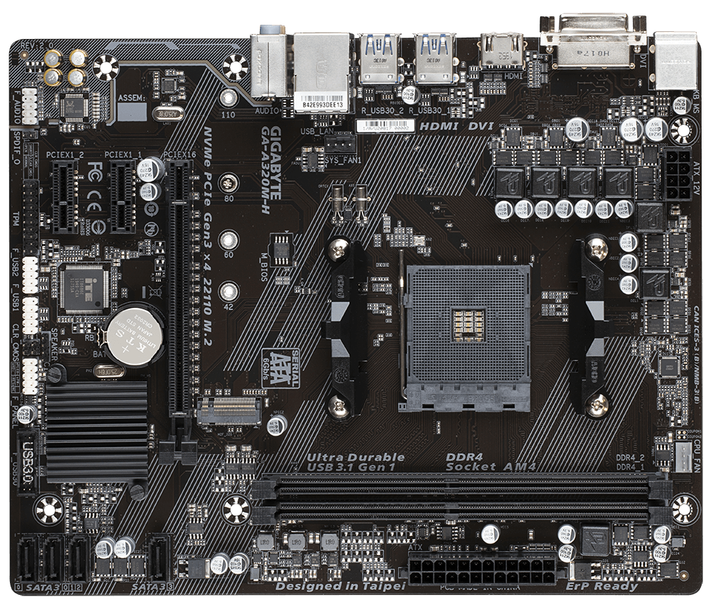 Gigabyte GAA320MH Motherboard at Rs 10000 Computer Motherboard in Motherboard Gigabyte Am4 Ga-A320M-H Box M-Atx Amd a320 ultra durable motherboard with hybrid digital vrm solution, nvme pcie 3.0 x4 22110 m.2, realtek gbe lan with cfosspeed, smart fan 5, 2. Amd a320 ultra durable motherboard with hybrid digital vrm solution, nvme pcie 3.0 x4 22110 m.2, realtek gbe lan with cfosspeed, smart fan 5, 2. 3 x audio jacks (line in, line out, mic in). Motherboard Gigabyte Am4 Ga-A320M-H Box M-Atx.