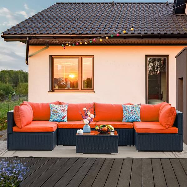 Cesicia 7Piece Wicker Outdoor Sectional Set with Orange Cushions and Red 7 Piece Outdoor Sectional Enjoy free shipping on most stuff, even big stuff. Shop online for red outdoor sectional sets. 7 pieces outdoor pe wicker furniture set patio rattan sectional conversation sofa set with red cushions and glass top table. Browse a large selection of outdoor sectional sets in a wide range of sizes, finishes and styles. Shop wayfair for all the best red. Red 7 Piece Outdoor Sectional.
