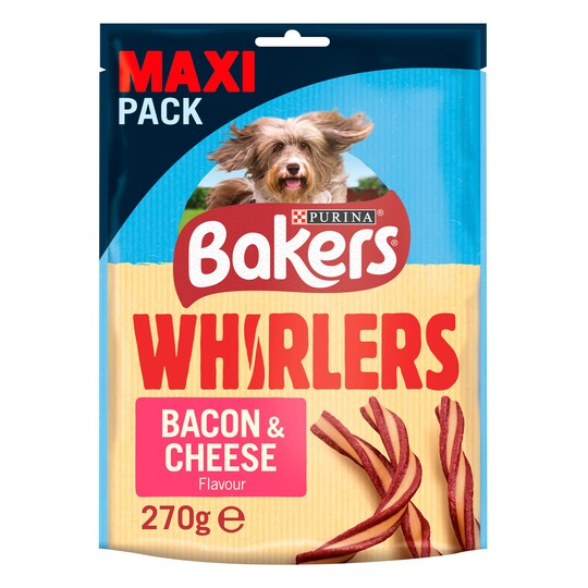Bakers Whirlers Meaty Dog Treats Bacon & Cheese 270G Tesco Groceries