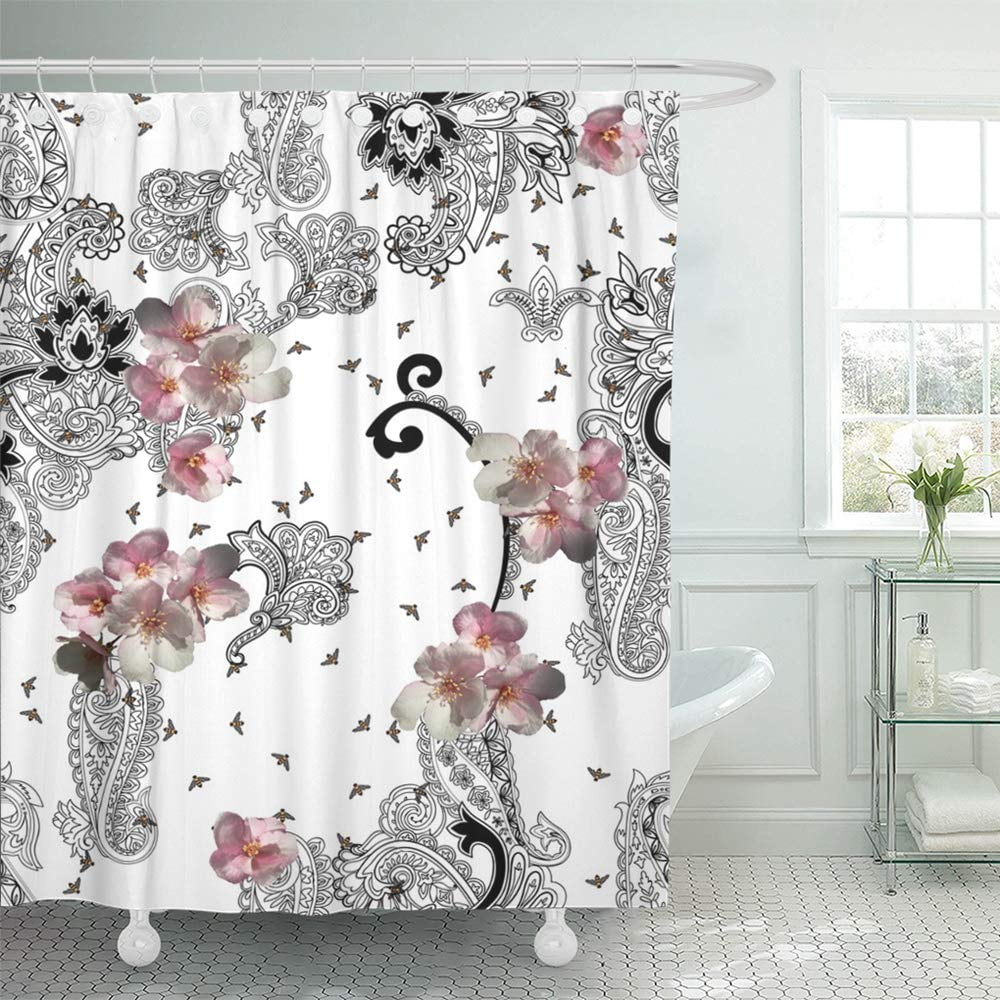 CYNLON Damasks Brown Beige Black Floral Paisley Flowers Elegant Shower Curtains Paisley Enjoy free shipping on most stuff, even big stuff. Check out our paisley bathroom shower curtains selection for the very best in unique or custom, handmade pieces from our shower curtains &. Fabric shower curtain, beige and grey printed boho paisley damask pattern shower curtains for bathroom, waterproof bathroom curtains, 72 w. Shop wayfair for all the best blue paisley. Shower Curtains Paisley.