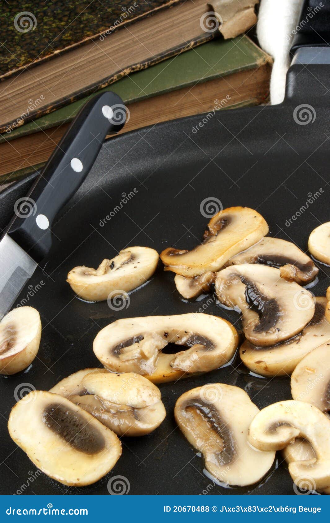 Grilled mushrooms in a pan stock photo. Image of season 20670488