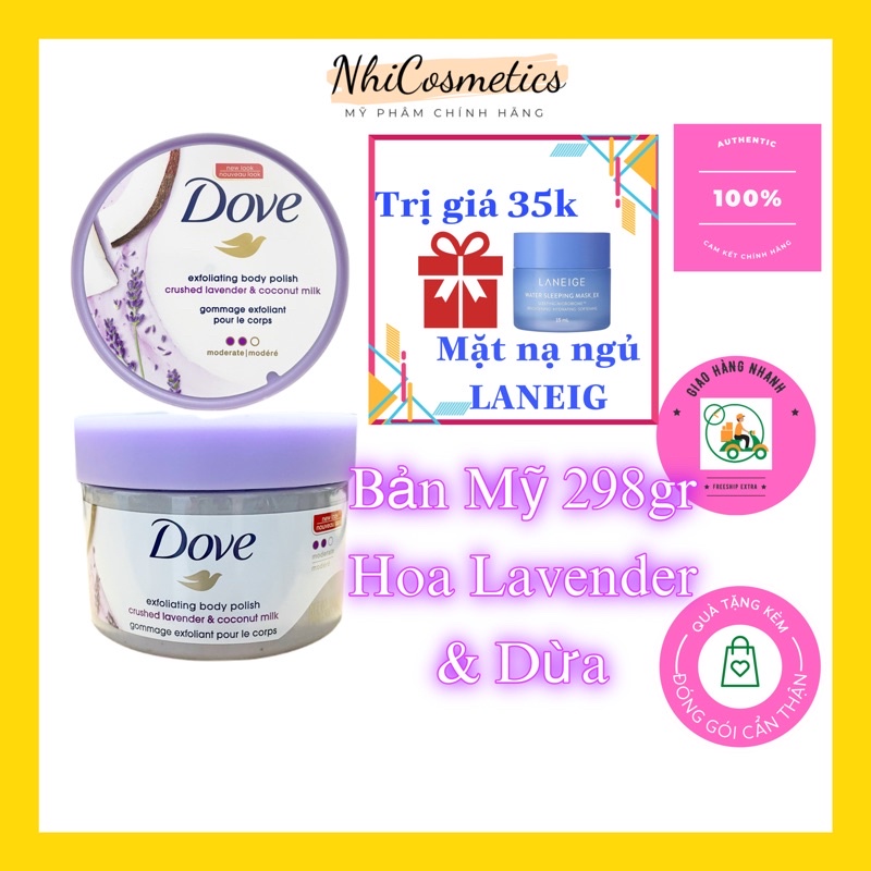 Tẩy da chết Dove Exfoliating Body Polish Body Crushed Lavender&Coconut Milk 298g (MỸ) Dove Exfoliating Body Scrub Crushed Lavender & Coconut Milk this moderate body polishing scrub effectively removes dead skin cells to reveal soft, radiant skin, giving you the glow. looking for a caring exfoliating scrub to buff away dull, dry skin and soothe your senses all in one? The scent of this smells like a lavender and a hint of plastic bag. with dove crushed lavender &. Dove Exfoliating Body Scrub Crushed Lavender & Coconut Milk.