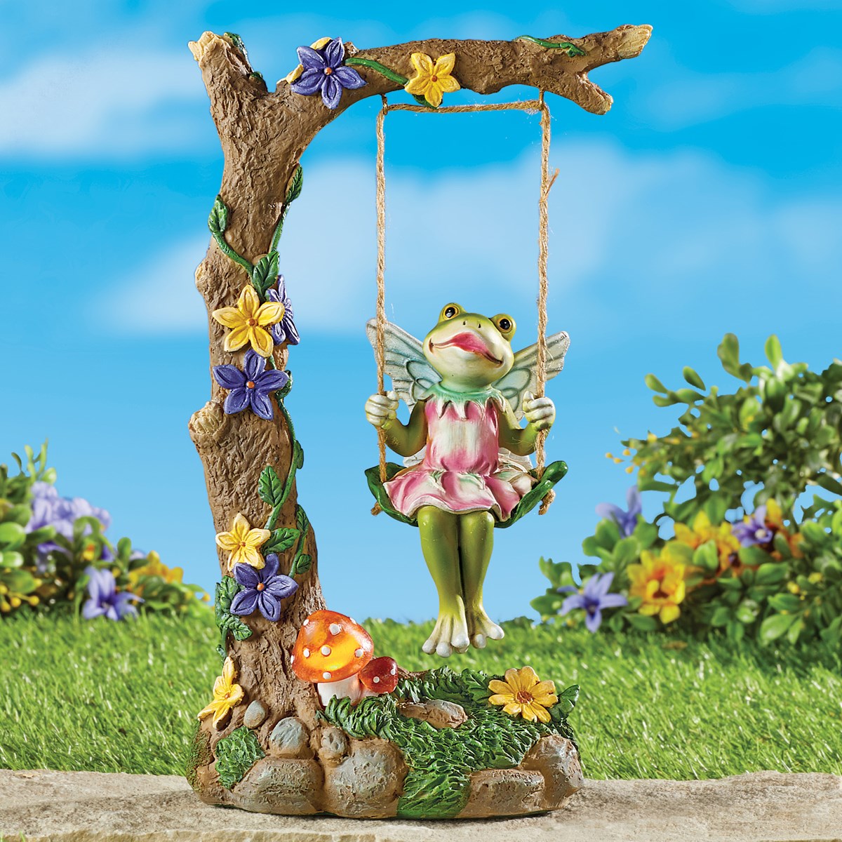 Solar Lighted Frog on a Swing Garden Decoration Collections Etc. Frog On Swing Garden Ornament add a whimsical conversation piece to your flower bed, fairy garden, or other outdoor space with the decorative frog couple. check out our frog on swing statue selection for the very best in unique or custom, handmade pieces from our figurines shops. shop wayfair for the best frog garden decor frog on a swing. Enjoy free shipping. Frog On Swing Garden Ornament.