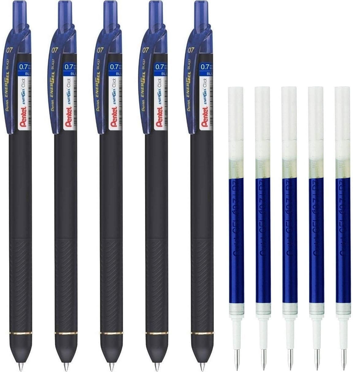 Pentel EnerGel Click 0.7mm Metal Tip (EnerGel Click Pen Blue 5 & LR7 Refill Blue 5) By DTL
