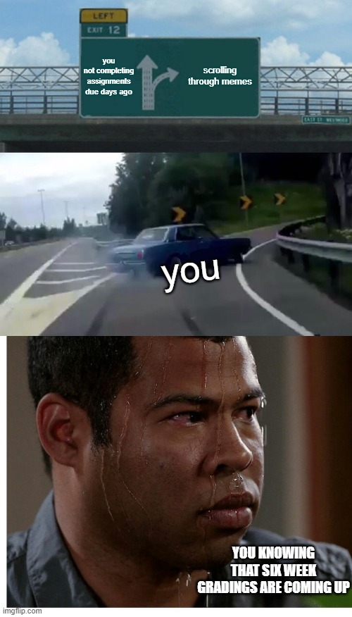 Image tagged in memes,left exit 12 off ramp,jordan peele sweating Imgflip