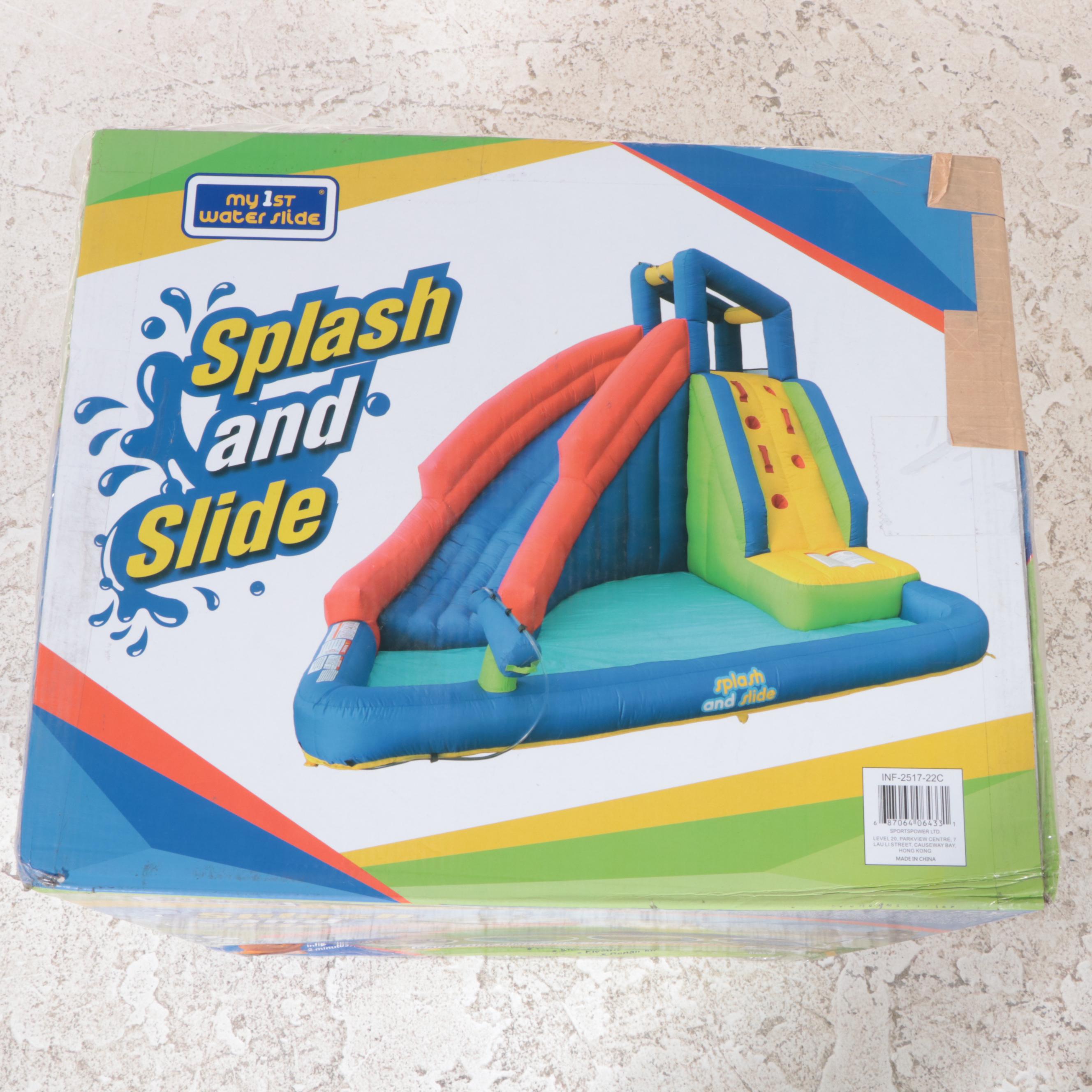 My First Waterslide Splash and Slide, Easy Assmebly, 132lb Limit First Water Slide Splash And Slide Introduce little ones to water fun with this outdoor waterslide and splash pool set. Inflatable waterslide & splash pool for toddlers: The curved water slide with the included water sprayer provides an exciting wet trip down to the large splash pool. Add fun, refreshing water play by connecting a water hose to the sprayers and water cannon. The my 1st. First Water Slide Splash And Slide.