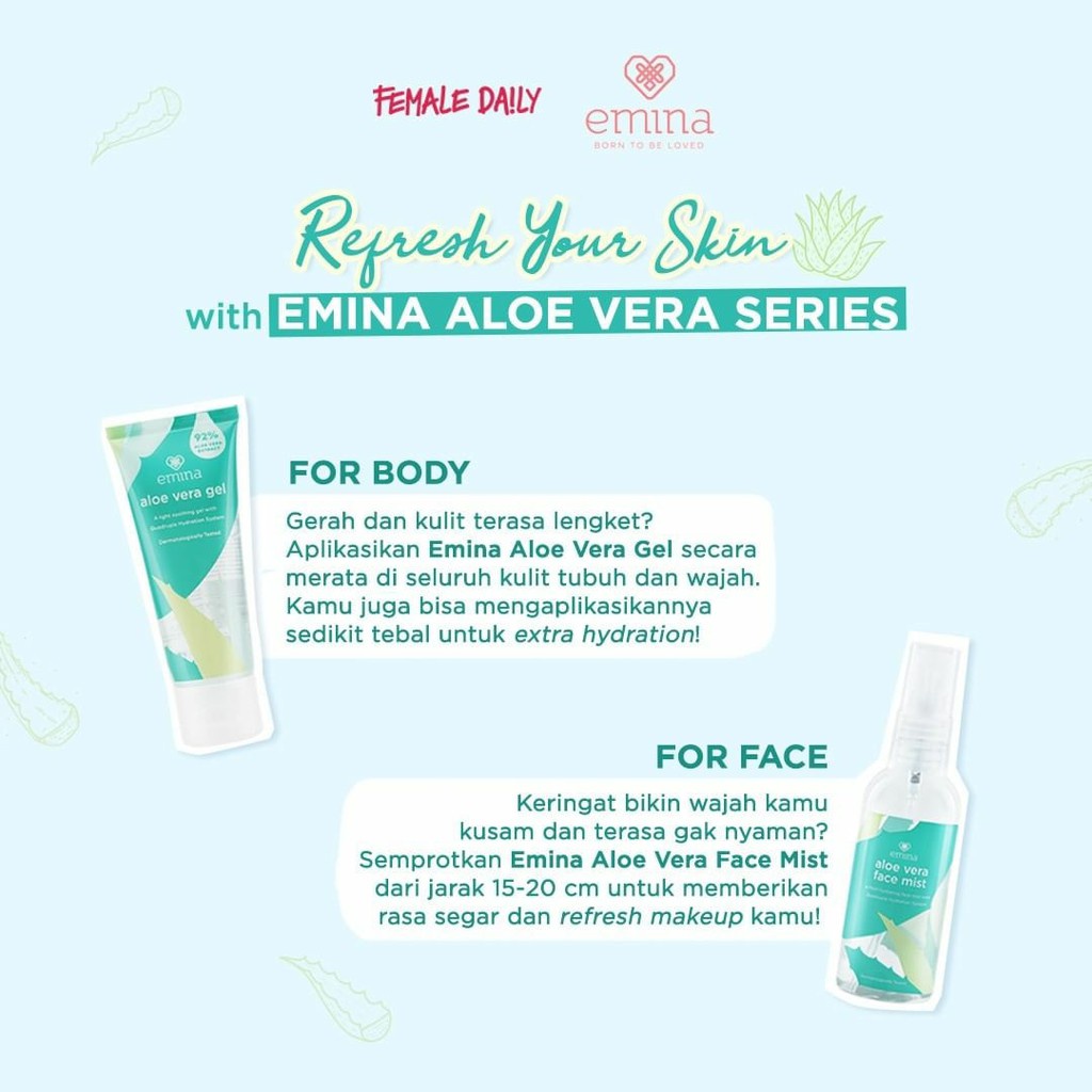PAKET 2AV Emina Aloe Vera Gel 60ml + Aloe Vera Face Mist 60ml Lazada Moisturizer Emina Aloe Vera Aku pribadi lebih suka moisturizer dalam bentuk gel. Emina aloe vera gel ini dapat digunakan juga sebagai moisturizer gel terutama bagi kulit berminyak ataupun berjerawat. Udah beberapa produk yg aku coba, tapi yg punyanya. Biasanya aku pakai setelah expoliasi pakai scrub buat menambah. Freshen up your face with emina aloe vera face mist. Centella asiatica extract, polygonum cuspidatum root extract,. Moisturizer Emina Aloe Vera.