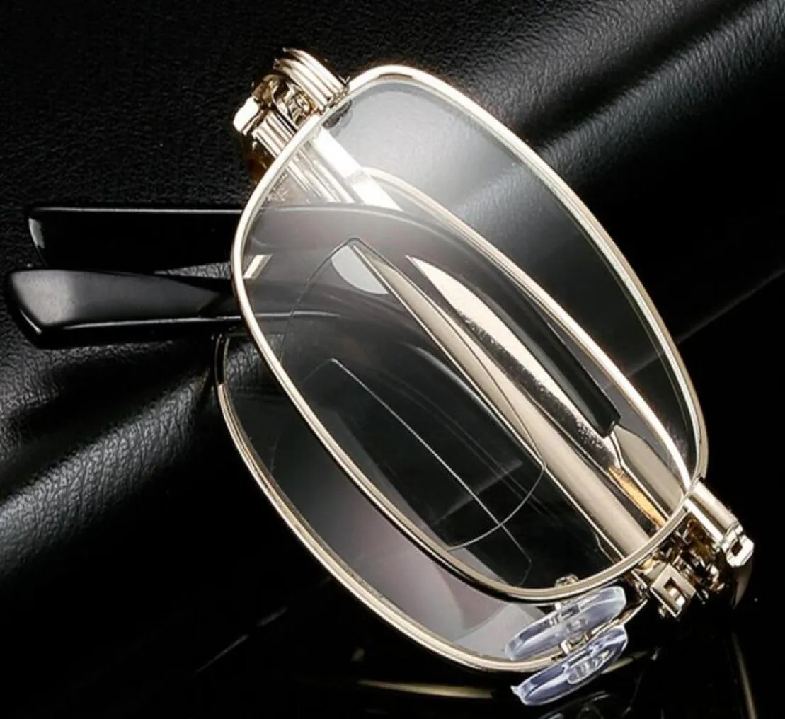 Metal Frame Folding Bifocal Reading Glasses Portable Reading Eyewear