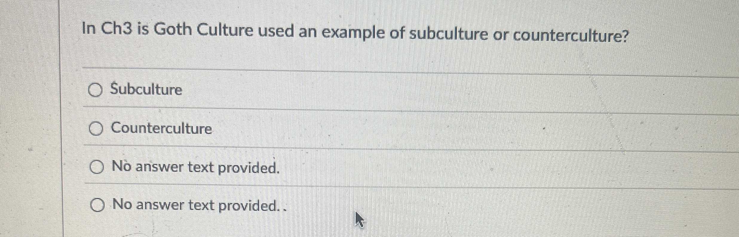 Solved In Ch3 is Goth Culture used an example of subculture