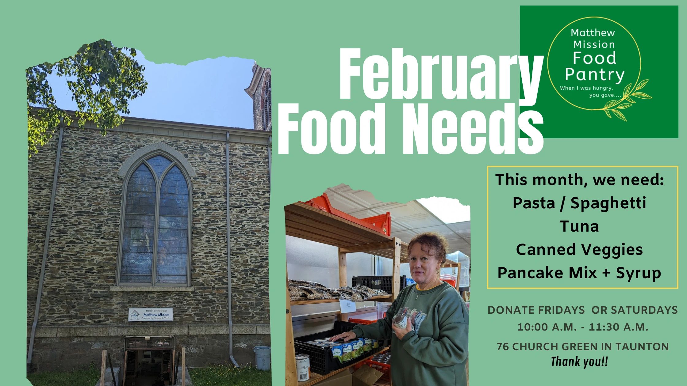 Thank you... The Matthew Mission Outreach and Food Pantry Facebook Matthew Mission Taunton Ma the matthew mission opened in 2016, providing food and respite to homeless individuals. We are located at first parish church, which in the same green as. Our location in downtown taunton. Taunton, norton, easton, raynham, lakeville,. matthew mission food pantry, taunton, massachusetts. The matthew mission is a ministry of the first parish church in. first parish church's. Matthew Mission Taunton Ma.