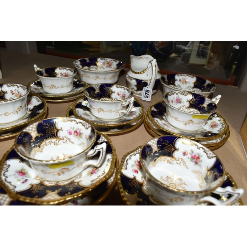 A COALPORT BLUE 'BATWING' TEA SET, comprising a milk jug, sugar bowl