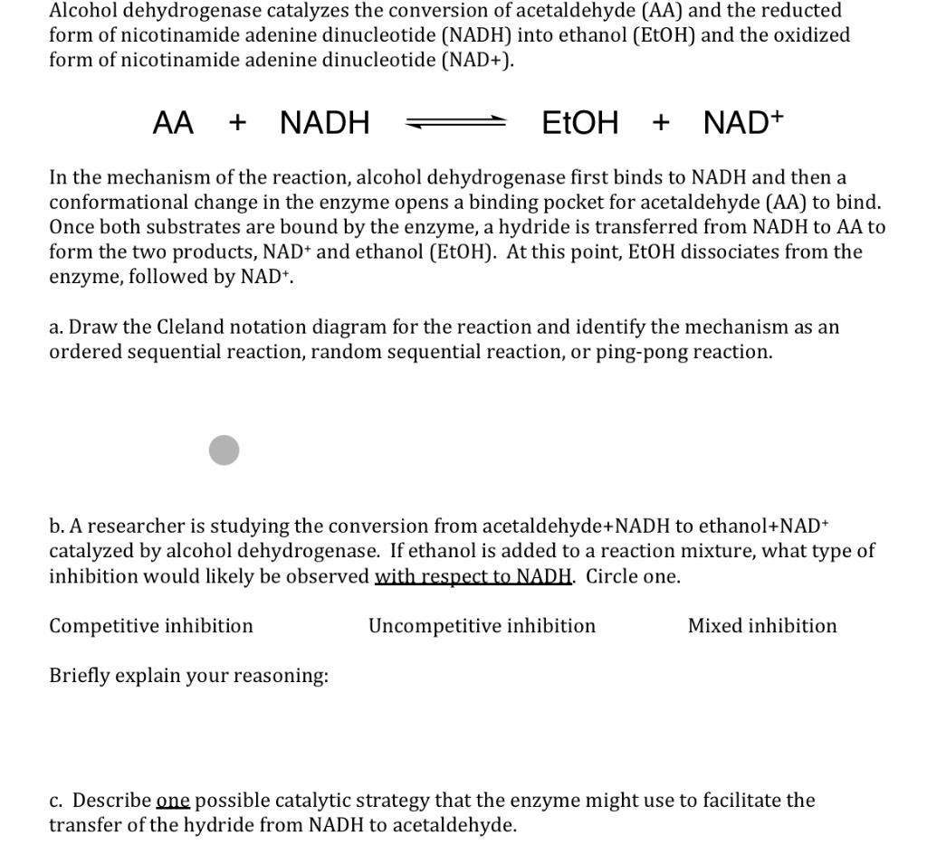 Solved Alcohol dehydrogenase catalyzes the conversion of