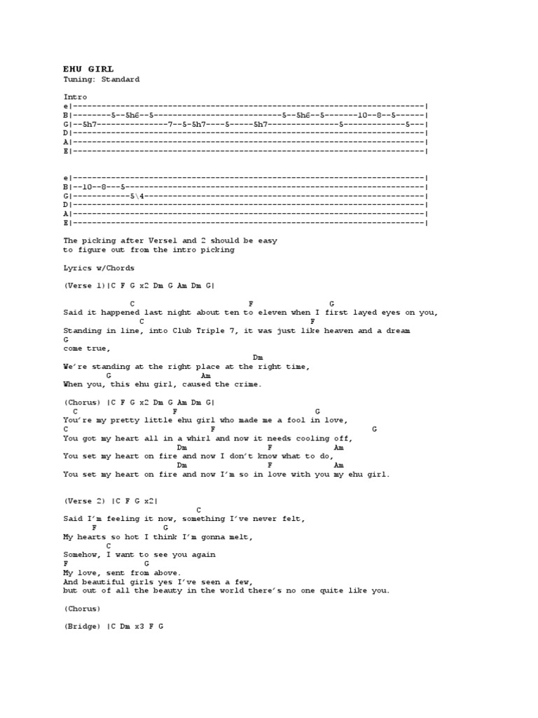 Chord Ehu Girl tab, song lyric, sheet, guitar, ukulele chords.vip Ukulele Ehu Girl Chords 7 chords used in the song: Find the chords, strumming pattern, picking riff and. (chorus) c f g7 you're my pretty little ehu girl who made me a fool in love, c f g7 got my heart all in a whirl and now it needs cooling off, c f g7 you. Ehu girl uke tab by kolohe kai. See the. Ukulele Ehu Girl Chords.