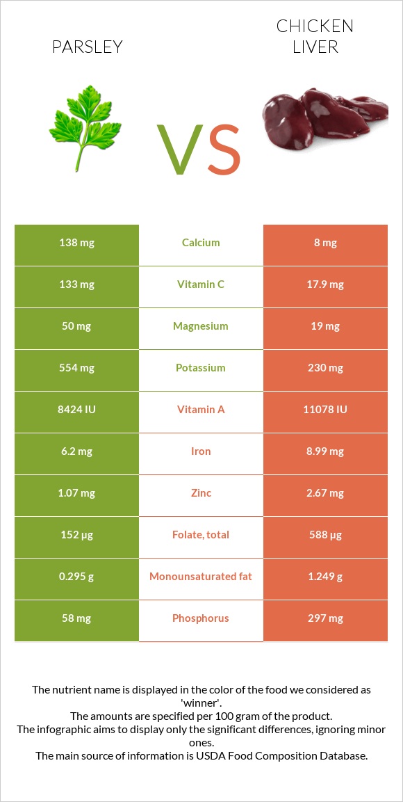 Parsley vs Chicken liver InDepth Nutrition Comparison