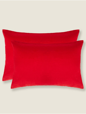 Red Brushed Cotton Pillowcase Pair Home at ASDA