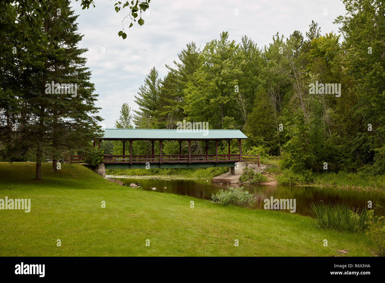 Covered bridge in Sunken Lake Park in northern Michigan Stock Photo Alamy