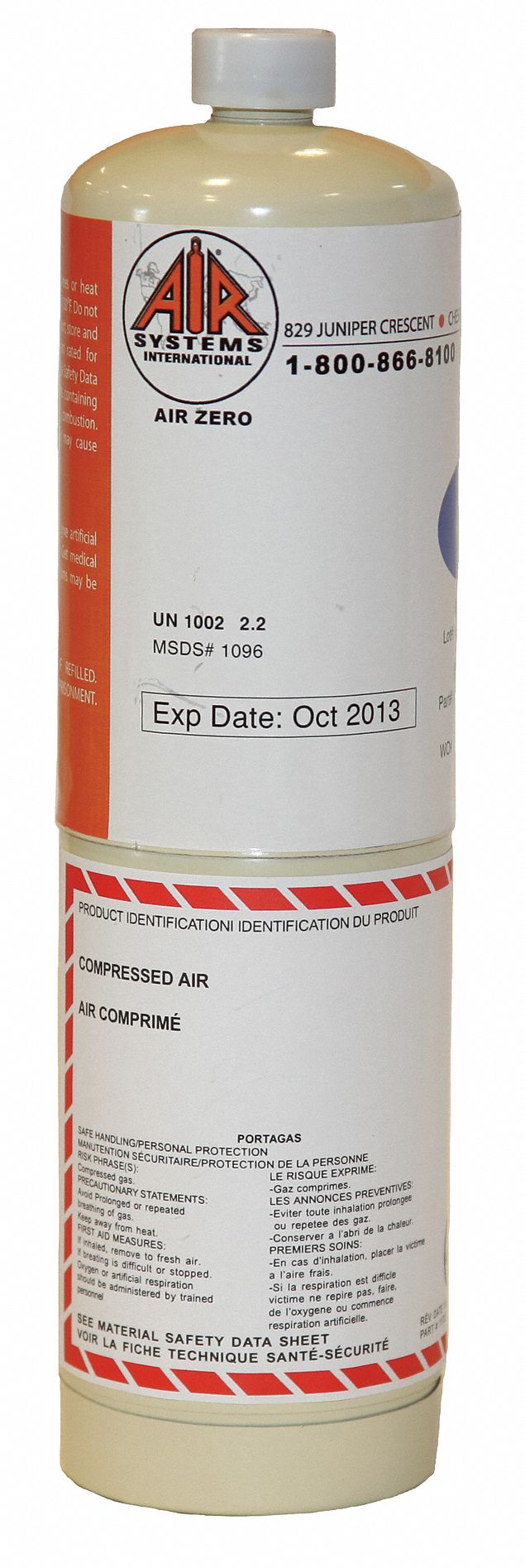 AIR SYSTEMS INTERNATIONAL Zero Air Calibration Gas, 17 L Cylinder