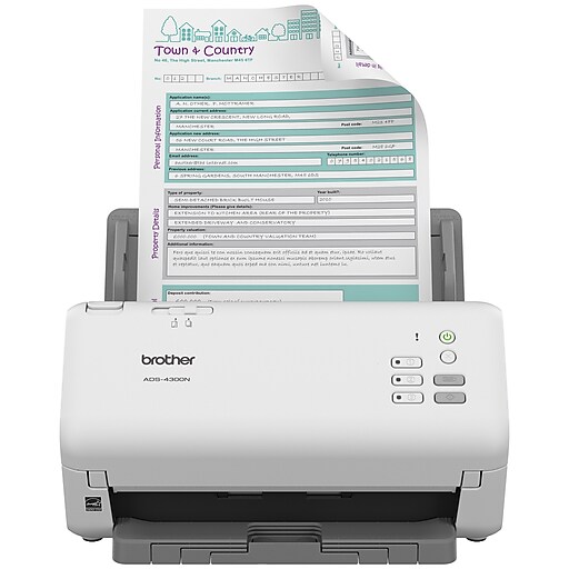 Brother ADS4300N Duplex Document Scanner, Gray Staples