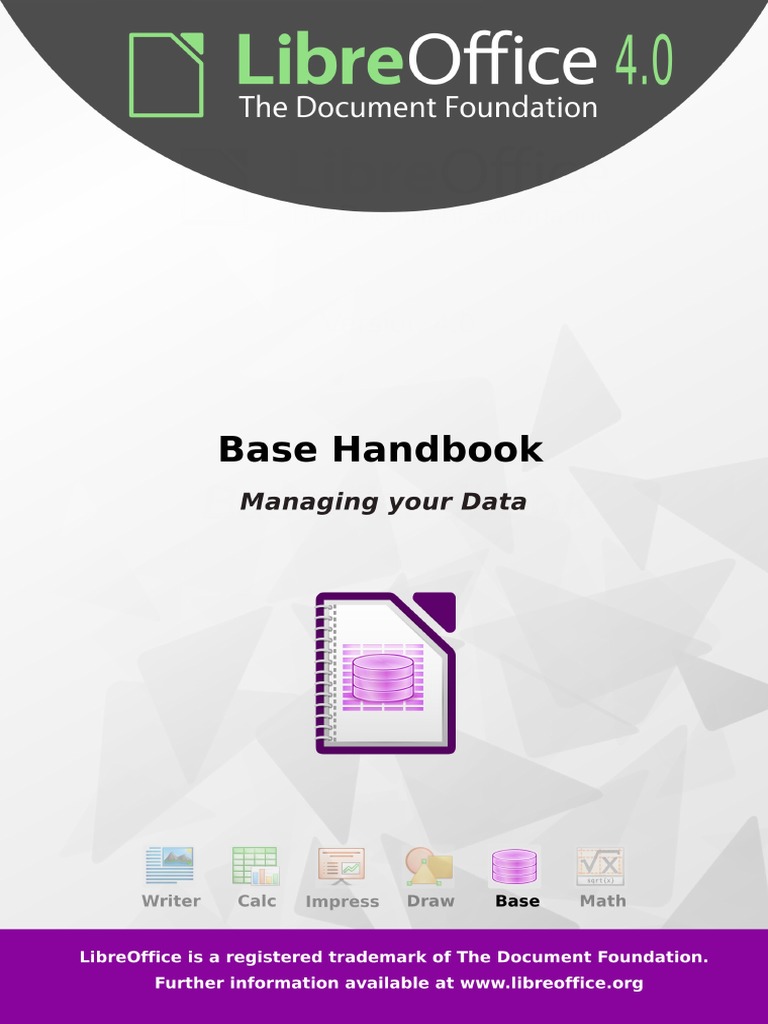 Libreoffice Database Manual . You can also use libreoffice base to connect to. Libreoffice base natively supports some flat file database formats, such as the dbase format. Purchase or download the latest libreoffice base handbook, written by community experts. This chapter covers creating a database, showing what is contained in a database and how the different parts are used by libreoffice. In daily use, base initially opens. A base file is a compressed folder that contains information for the different work areas (components) of base.