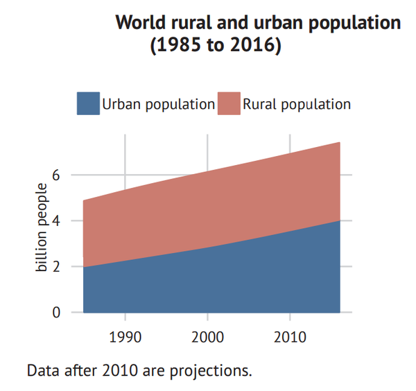 Graph Balance of Urban vs. Rural Global Population Big Picture