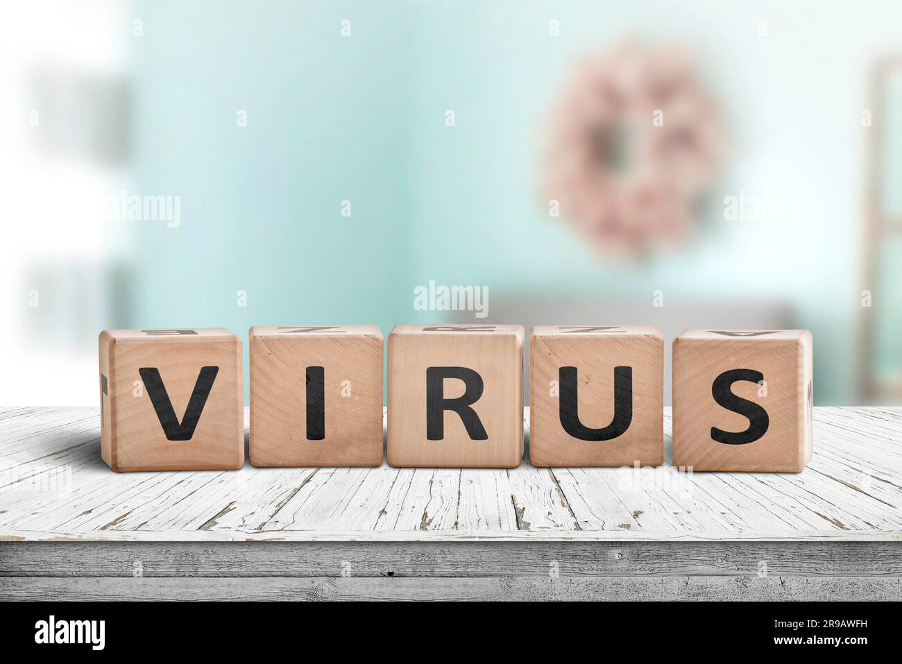 Virus alert message on a desk in a bright environment with cyan colors