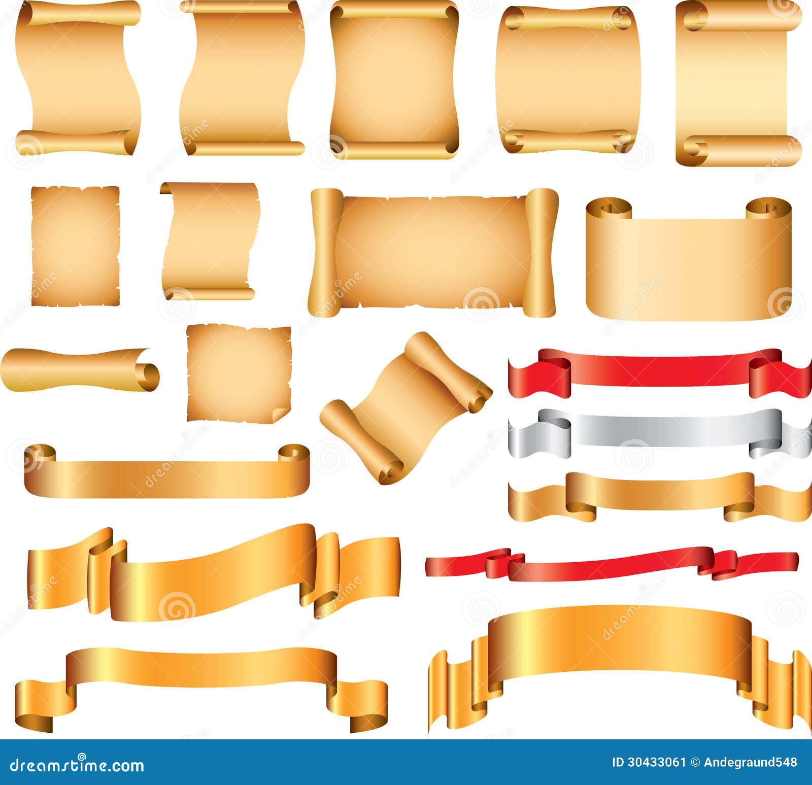 Scrolls and flags set stock vector. Illustration of document 30433061