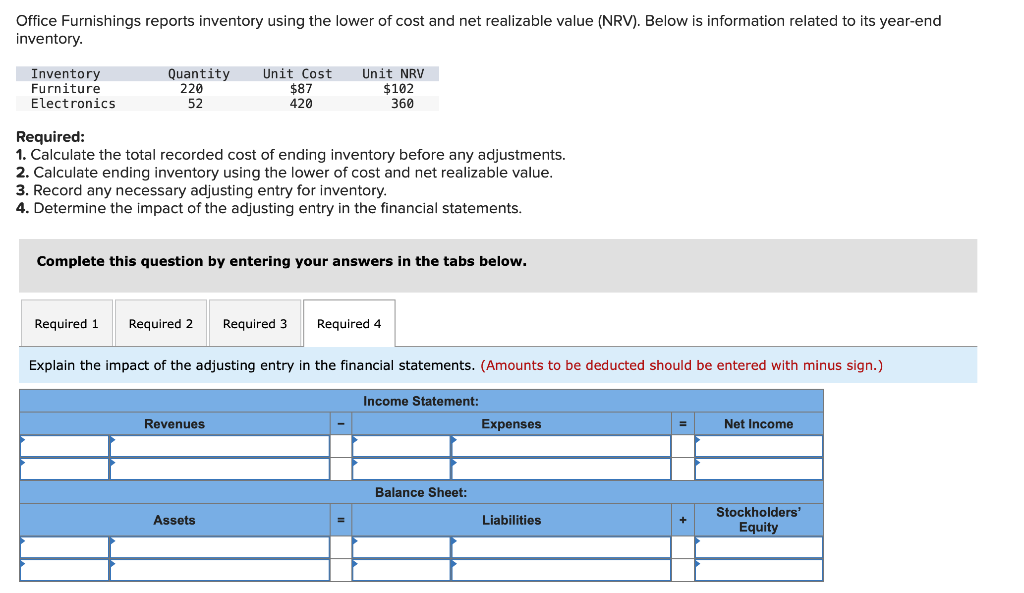 Solved Office Furnishings reports inventory using the lower