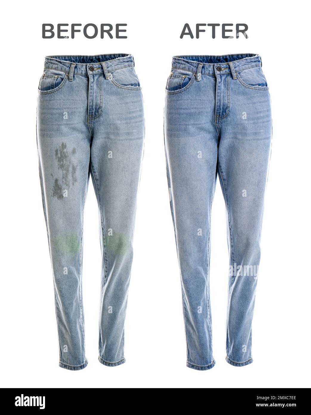 Stylish jeans before and after drycleaning on white background Stock How To Dry Clean Black Jeans Hang up black jeans or lay them flat to dry. Check out levi's® blog for our expert tips and tricks on how to keep your favorite black. Always avoid putting black jeans in the dryer when possible. Instead, hang them right side out by a back belt loop to avoid. Learn how to wash and keep your black jeans from. How To Dry Clean Black Jeans.